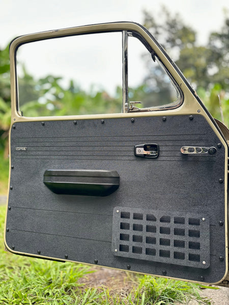 This set includes Molle panels for the front doors. Remember to check out the pics, they came out awesome! MOLLE stands for Modular Lightweight Load-Carrying Equipment. It was developed for the tactical world in the 1990's. Now it has become a popular add-on for the off-road and adventure world. A MOLLE panel is a versatile storage solution that can be used to hold a variety of equipment, including tools, cooking supplies, and recovery gear (important for VWs).