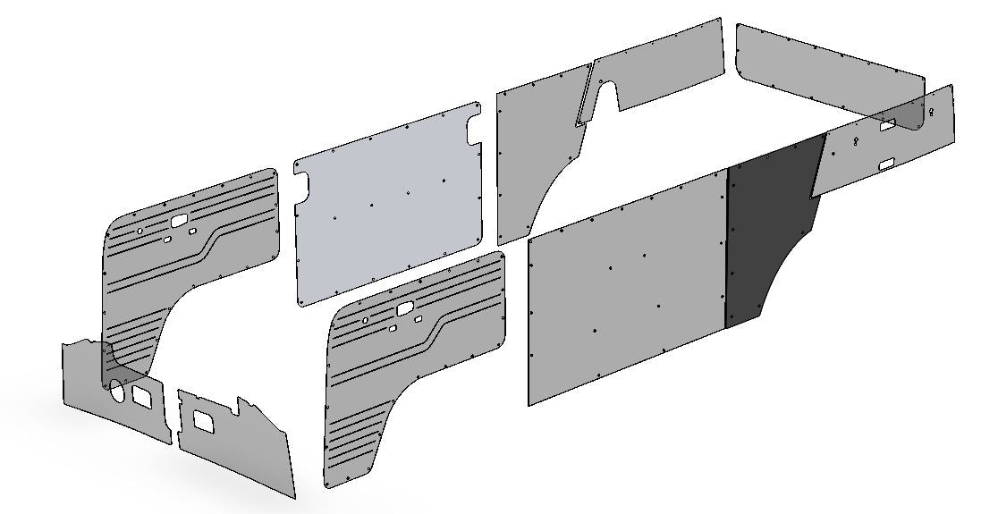 This is an individual panel as shown in the item picture. This panel is located behind the left side behind the rear bench seat. These panels are CNC machined to assure a perfect fit.