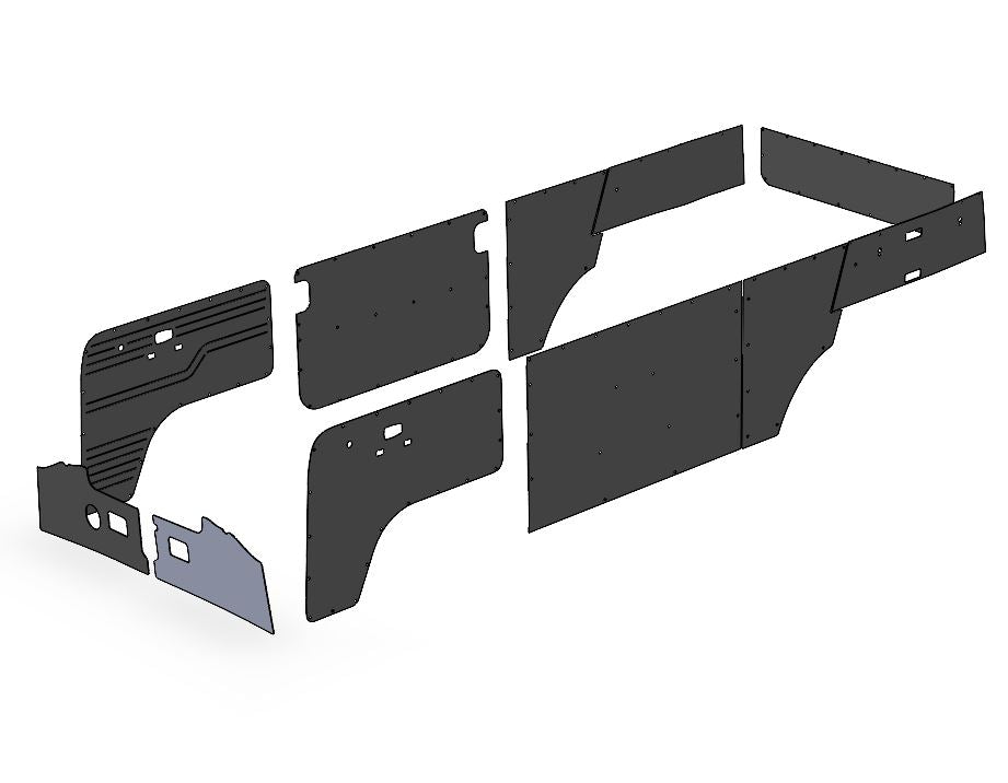 Complete your T2 Bay Window interior with this ABS Panel set for the Tin Top model. These panels are CNC machined to assure a perfect fit. Lines were added to front doors to replicate the style and look of the original panel.