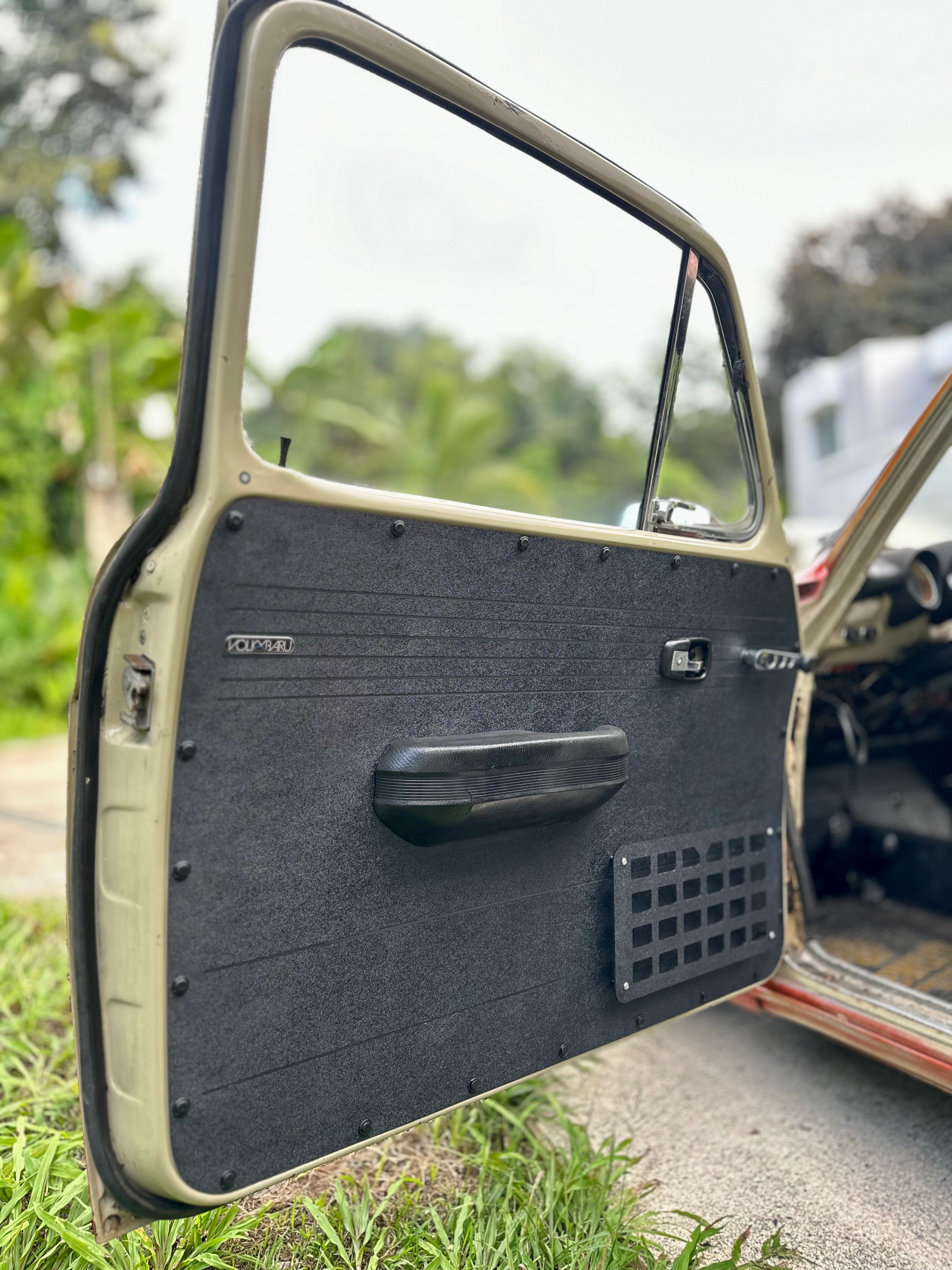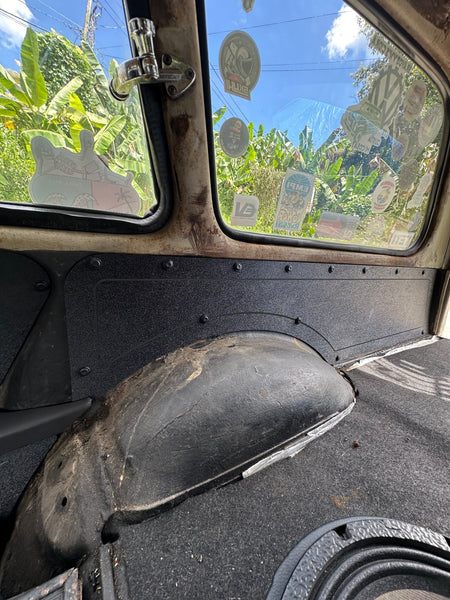 All VW Type 3's came with cheap cardboard that get warped due to moisture. The Volkybaru panels are made of durable ABS material, are waterproof and easy to clean. They will be the last panels that you will ever need! Only comes in black, but they can easily be painted (by you) to match any color.