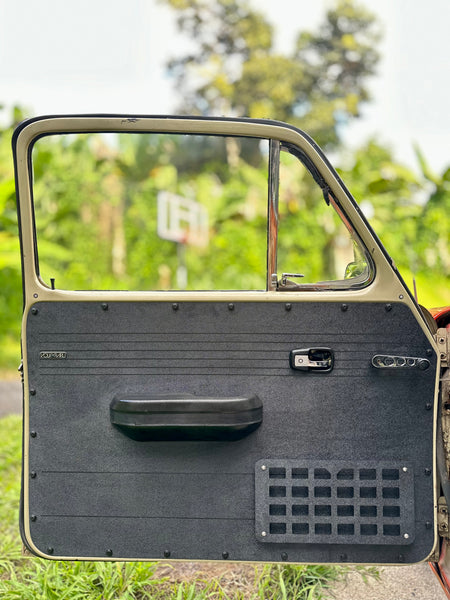 This is a eleven piece set for VW Squareback and also includes the Molle panels for the front doors. Remember to check out the pics, they came out awesome! MOLLE stands for Modular Lightweight Load-Carrying Equipment. It was developed for the tactical world in the 1990's. Now it has become a popular add-on for the off-road and adventure world. A MOLLE panel is a versatile storage solution that can be used to hold a variety of equipment, including tools, cooking supplies, and recovery gear (important for VWs).
