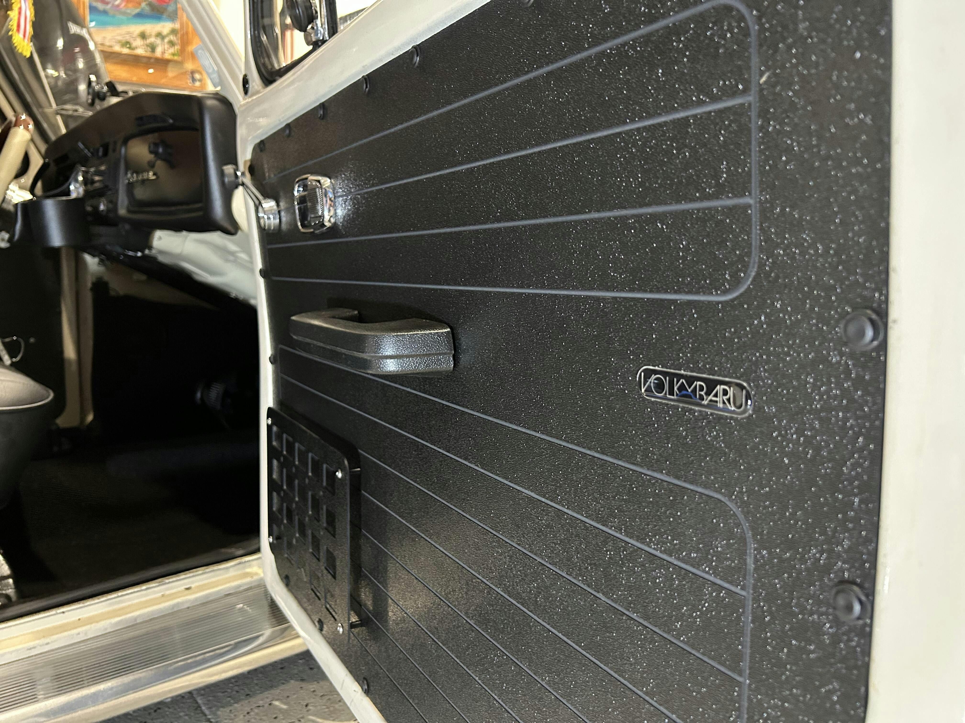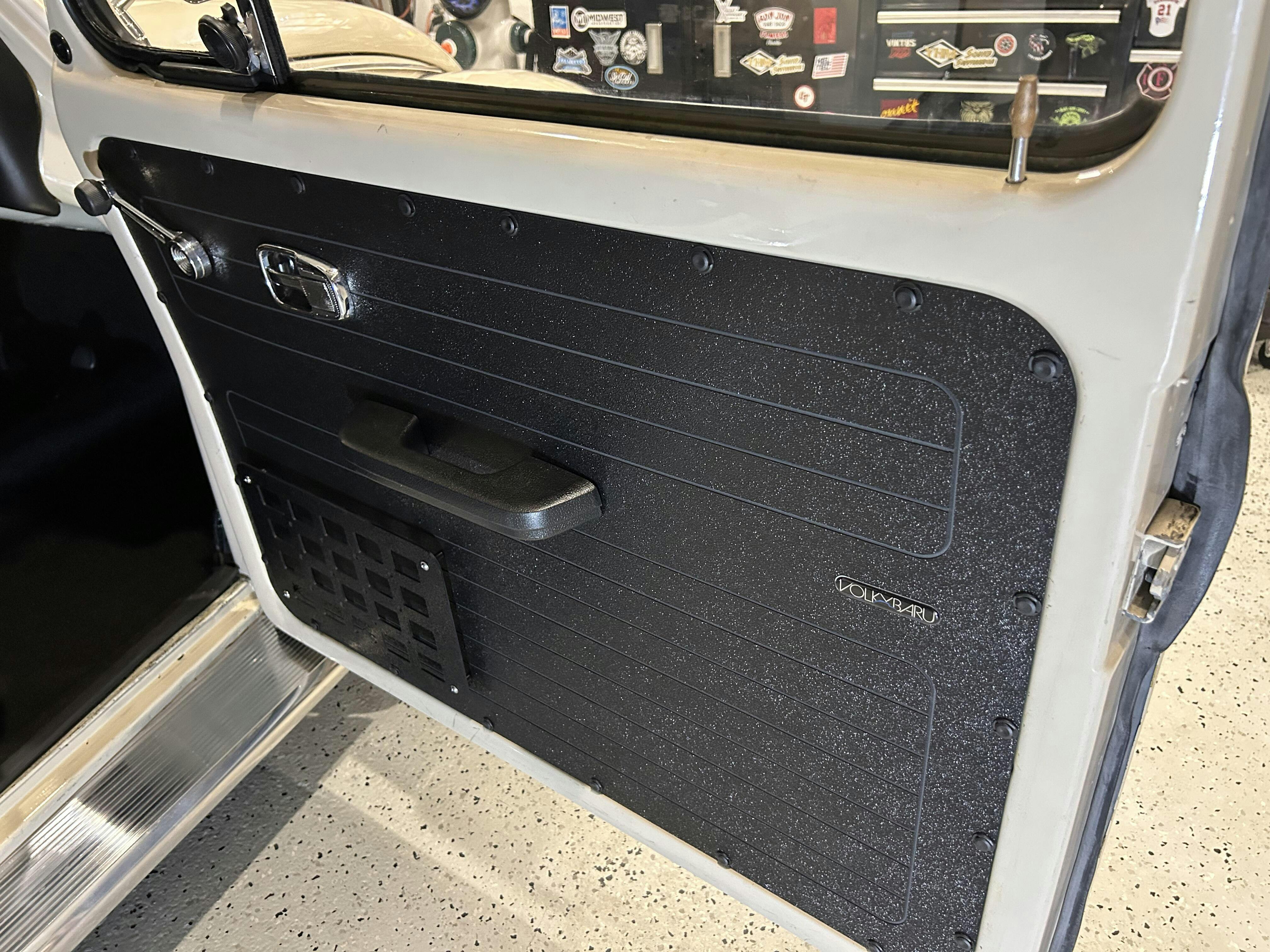 Complete your VW Beetle Bug T1 Sedan's interior with this ABS Panel set. These panels are CNC machined to assure a perfect fit. Lines were added to replicate the style and look of the original panel. In addition, a Molle panel is included to replicate the original pockets. The Molle panel let's you attach many holders for different type of accessories such as tools, cup holders, phone holders, flashlights and more.